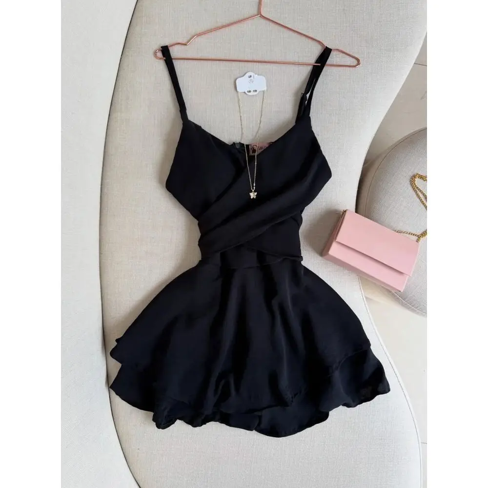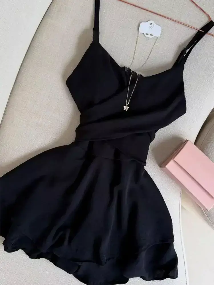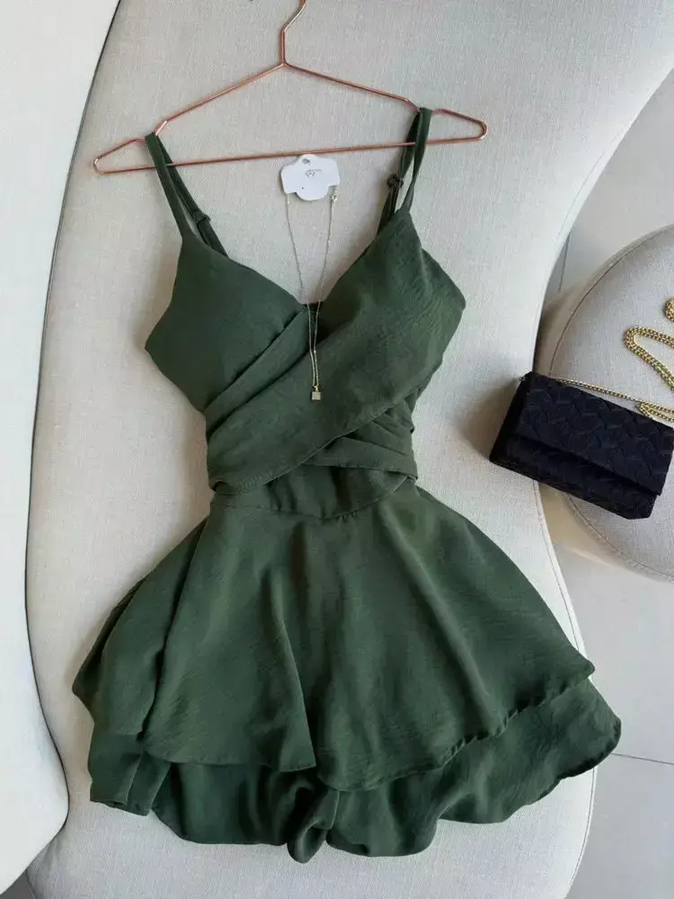 Leve, moderno e irresistivelmente feminino, o Vestido Mini em Chiffon foi pensado para quem ama um look fresco, elegante e com aquele toque sexy na medida certa. Com alças espaguete delicadas, decote V e detalhes drapeados, ele valoriza a silhueta e cria um visual romântico e marcante ao mesmo tempo.